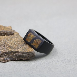 Chevalière en Ébène avec incrustation pierre Œil de Tigre.